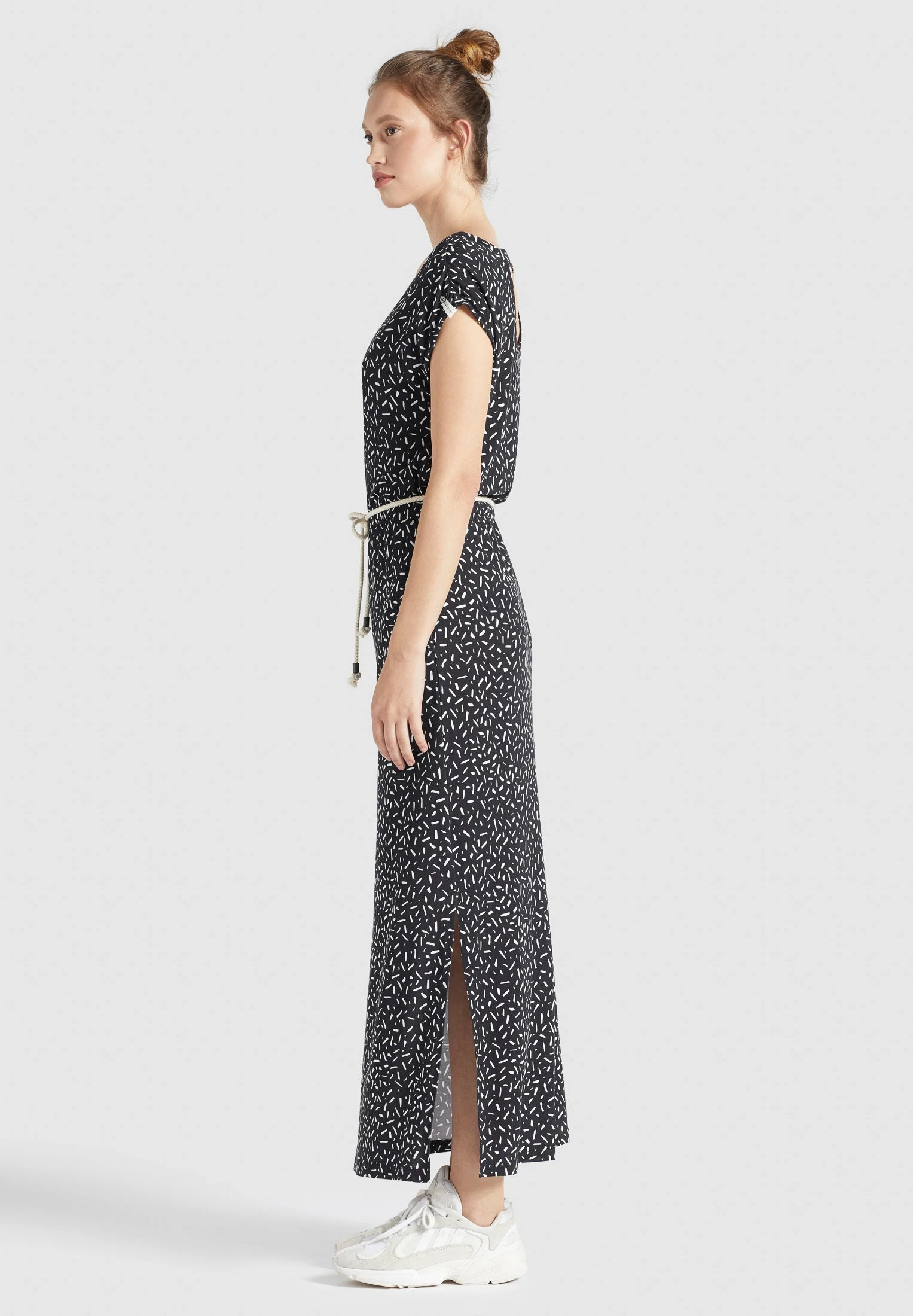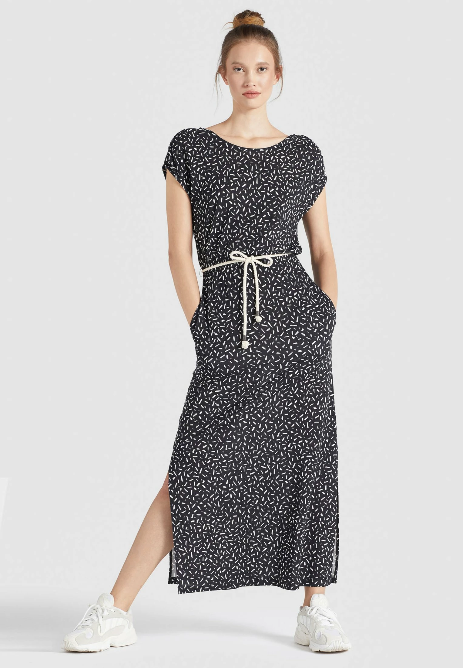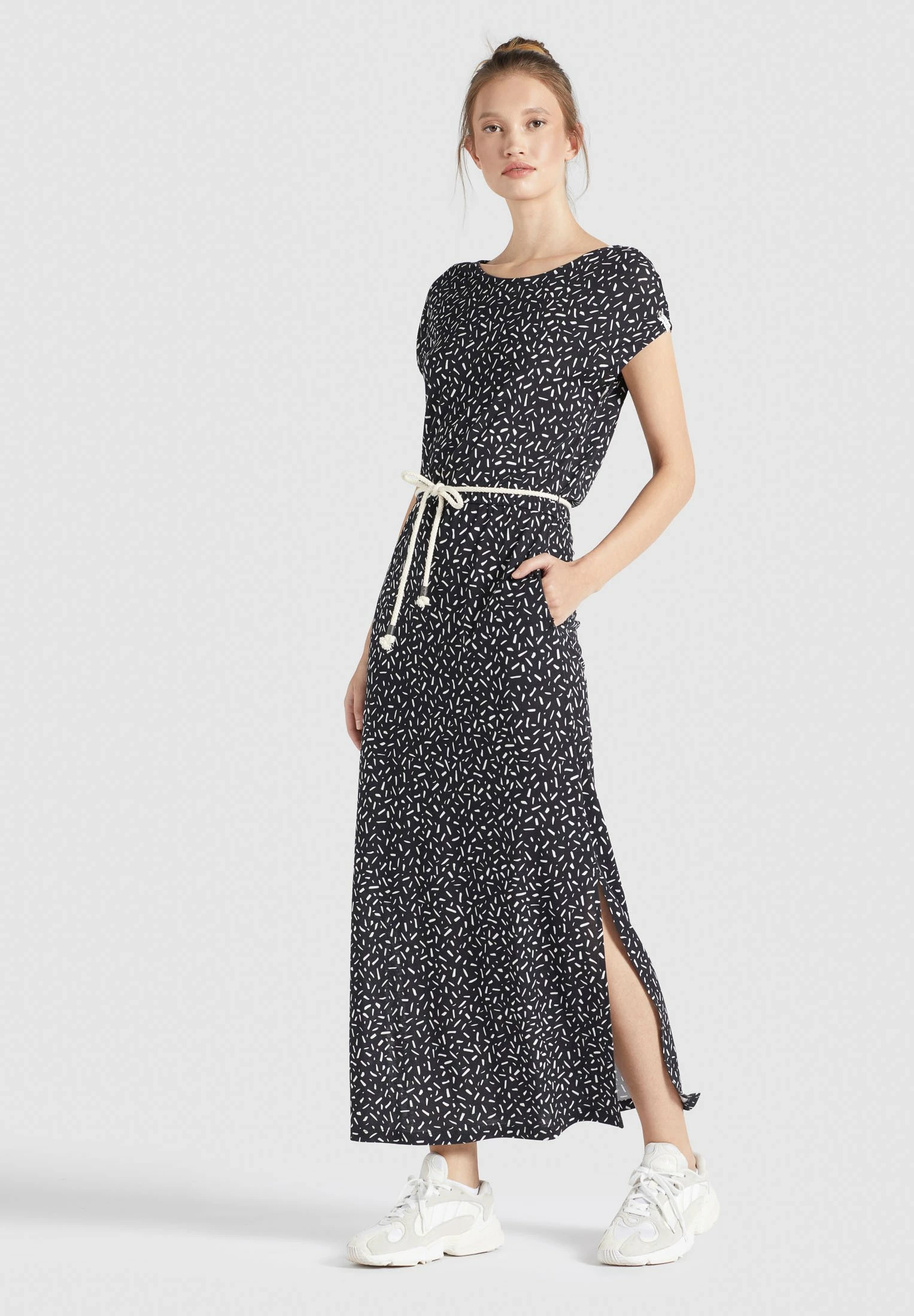 Khujo DOREEN – Długa Sukienka – Schwarz-weiß Gemustert